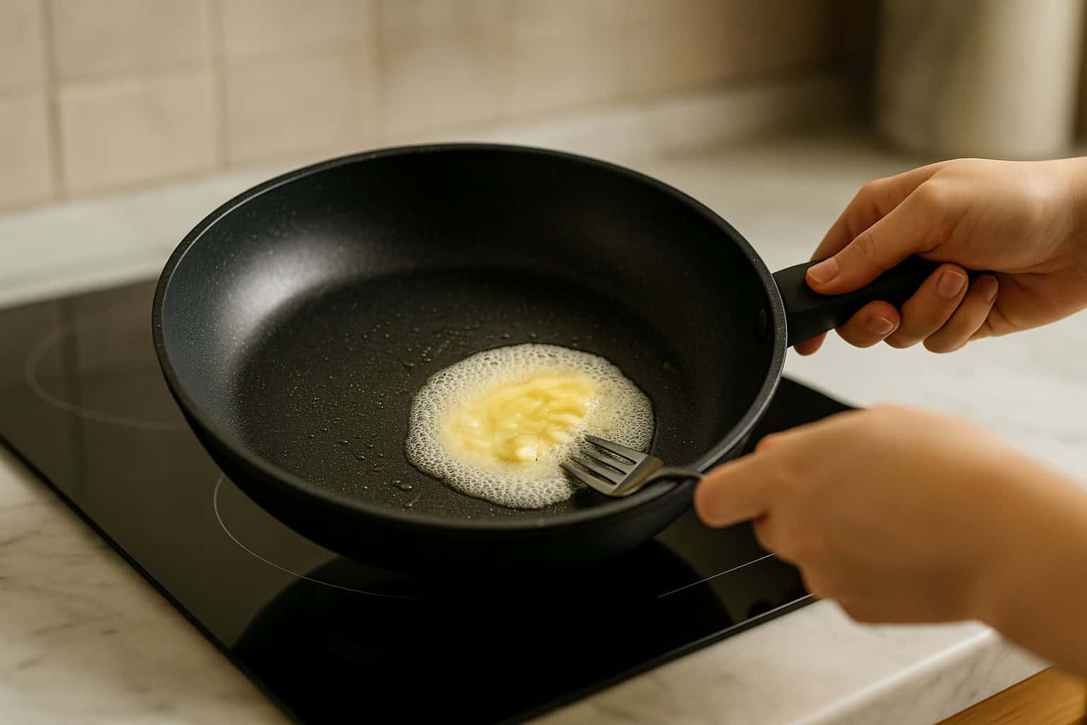 Heat a pan over medium heat, melt some butter or use non-stick cooking spray to coat the pan.