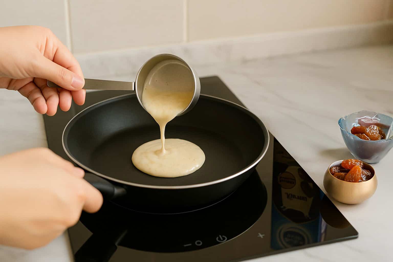 Add in ¼ cup of the batter to the pan. Let it cook until bubbles start forming on the surface. Flip and cook for another 1-2 minutes. Repeat with the rest of the batter.