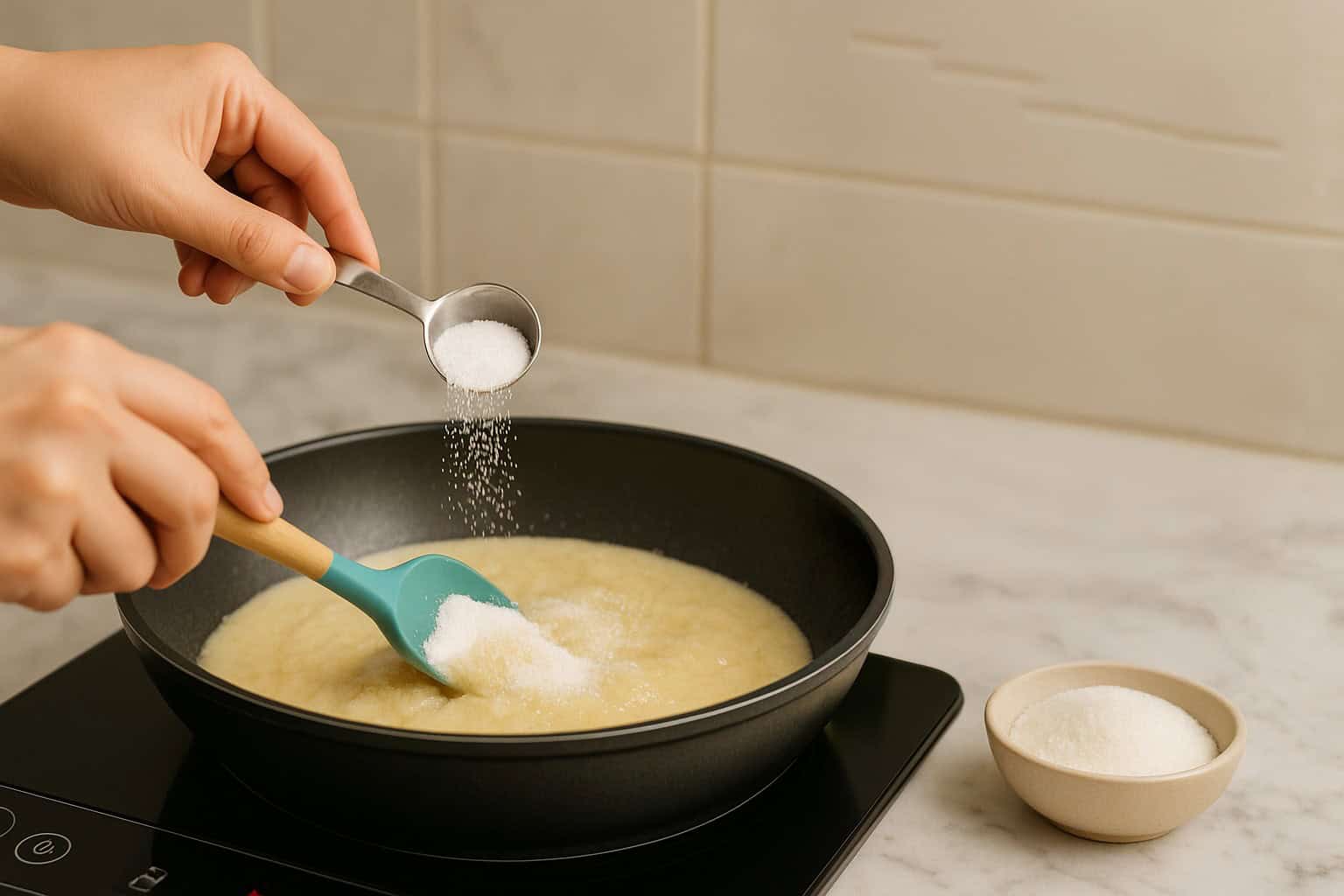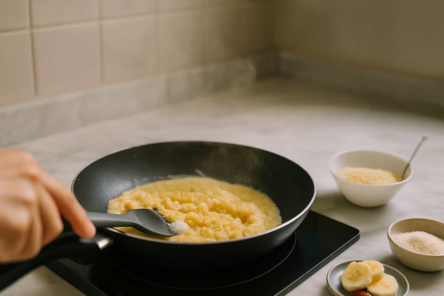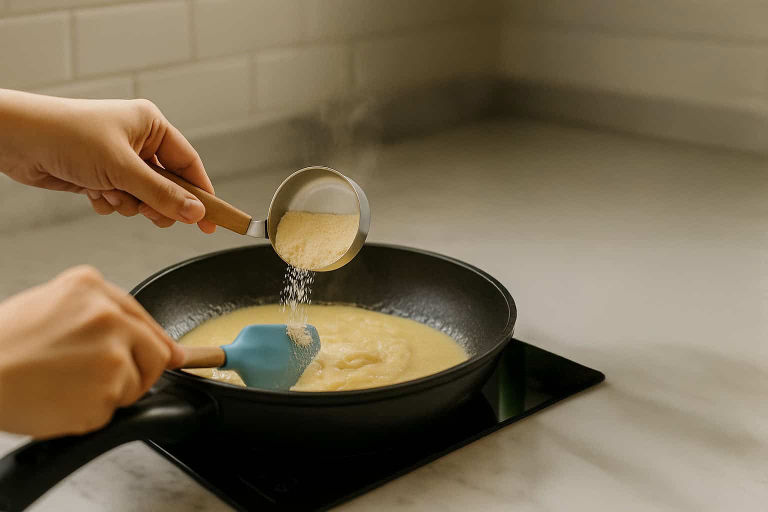Cook for 2-3 minutes, keep stirring non-stop until the milk begins to thicken.